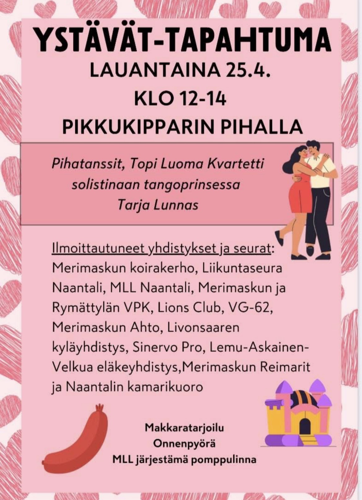 Olemme tänä vuonna mukana mukavassa Ystävät-tapahtumassa K-market Pikku-Kipparin pihalla. Tervetuloa tutustumaan toimintaan ja kenties kuulemaan hieman tulevista projekteista.